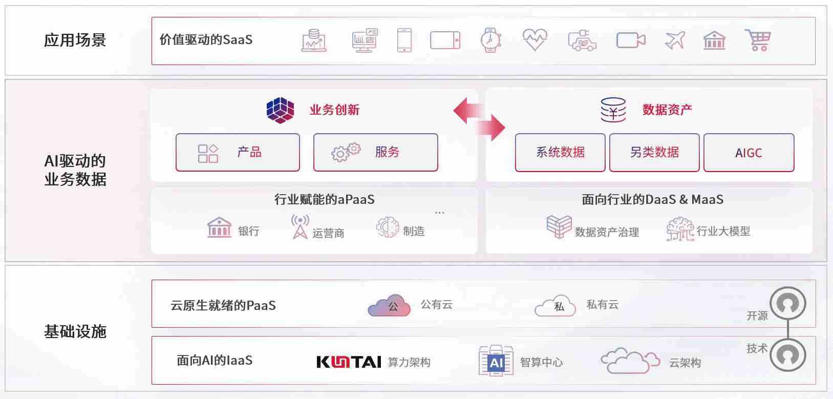 数字时代,,围绕企业数字化转型的关键要素,,EBpay数码开创性的提出数云融合战略和技术体系框架,,,着力在云原生、、数字原生、、、、AI原生和信创产业上架构产品和服务能力,,,,为处在不同数字化转型阶段的快消零售、、、汽车、、、、金融、、医疗、、、、政企、、教育、、、运营商等行业客户提供泛在的敏捷IT能力和融合的数据驱动能力,,,,构建跨界融合创新的数字业务场景和新业务模式,,,助力企业级客户建立面向未来的核心能力和竞争优势,,,,全面推动社会的数字化、、智能化转型升级。。